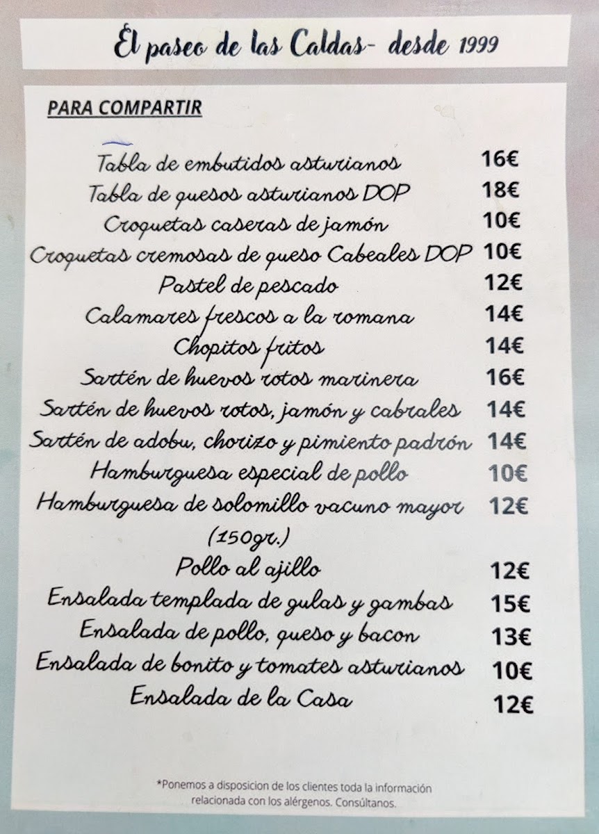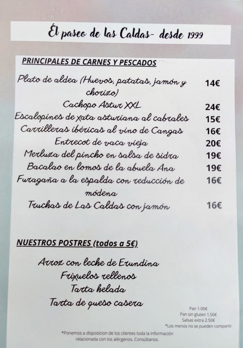 Welcome to El Paseo de las Caldas, an inviting restaurant nestled in the picturesque Las Caldas region of Asturias, Spain. With a menu that perfectly balances generous portions and delightful flavors, it offers a daily menu for just €15, making it an excellent value for food lovers. Diners rave about the rich, homemade dishes like arroz con leche and fabada asturiana, showcasing the heart of Asturian cuisine. The ambiance is warm and welcoming, especially on the charming terrace where you can savor your meal while enjoying the serene environment.